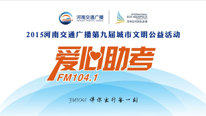 2015河南交通廣播全省“愛(ài)心送考”華美升級(jí)為 “愛(ài)心助考”,除了常規(guī)車(chē)友領(lǐng)取愛(ài)心助考、家有考生車(chē)貼外,領(lǐng)取時(shí)間和地點(diǎn)后期會(huì)公布,敬請(qǐng)鎖定FM104.1。