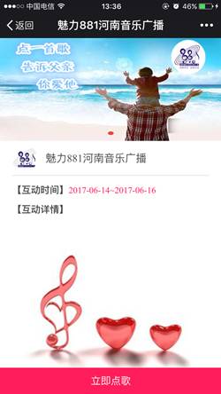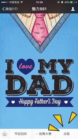 本周日就是父親節(jié)了。平時(shí)向爸爸們表達(dá)情意的機(jī)會(huì)可能不多,趁著節(jié)日,你可別落下。特意給親愛(ài)的老爸準(zhǔn)備了一份禮物,6月14日——6月16日,點(diǎn)擊菜單欄中的“點(diǎn)歌”或直接點(diǎn)擊本文底部的閱讀原文,進(jìn)入點(diǎn)歌互動(dòng)頁(yè)后點(diǎn)擊“立即點(diǎn)歌”,填寫(xiě)并提交姓名、手機(jī)號(hào)、所點(diǎn)歌曲名稱、以及你想對(duì)父親說(shuō)的話。