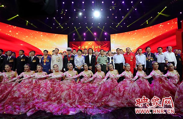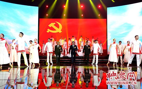 在全體人員共同高歌《沒有共產(chǎn)黨就沒有新中國》中,文藝匯演落下帷幕。演出結束后,省領導趙素萍、胡永生、段喜中、戴柏華、靳克文和省總工會黨組書記、常務副主席李建莊走上舞臺,祝賀演出成功,接見全體演職人員,并與大家合影留念。