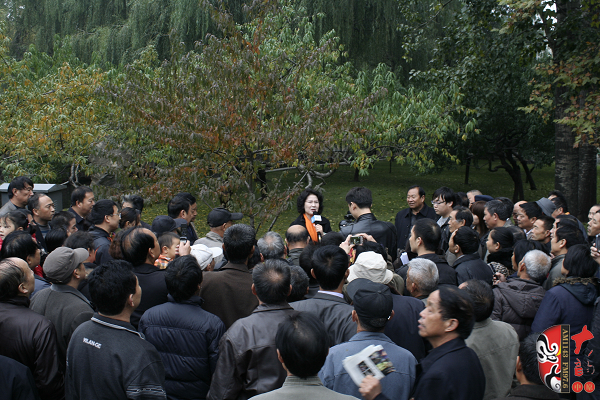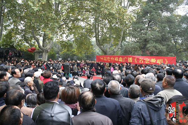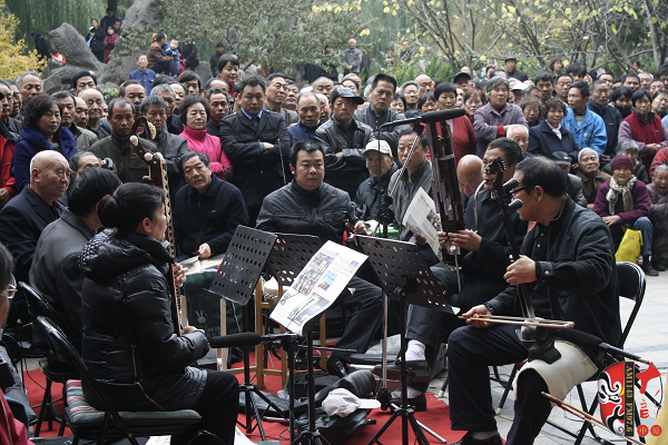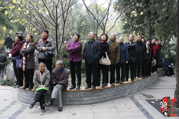 觀眾當(dāng)中,有從廣播中得知消息早早就趕來(lái)的戲迷,也有周末游園駐足的市民。活動(dòng)原計(jì)劃九點(diǎn)半開始,在現(xiàn)場(chǎng)戲迷們的熱情要求下,活動(dòng)主辦方之一——鄭州梓軒藝術(shù)團(tuán)的團(tuán)員們九點(diǎn)剛過(guò)便開始了暖場(chǎng)演出。 這是一個(gè)由戲迷自發(fā)組織的藝術(shù)團(tuán),他們經(jīng)常在公園演唱,為廣大戲迷所熟悉和喜愛(ài),也為豐富群眾的業(yè)余文化生活做出了很大的貢獻(xiàn)。