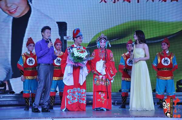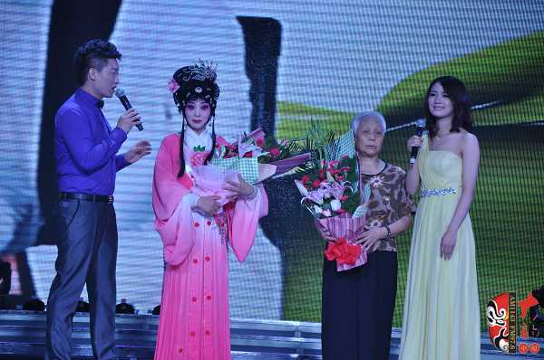 在6月16日舉辦的關小鳳個人戲曲專場中,關小鳳之女、24歲的張聰表演了豫劇《情斷狀元樓》“打神告廟”及《抬花轎》的“坐轎”兩折戲。畢業(yè)于河南省藝校的張聰現(xiàn)場表演稍顯稚嫩,但也獲得了觀眾的熱情鼓勵。張聰在接受記者采訪時說,自己戲校畢業(yè)之后到了福建省一閩劇團工作,已經(jīng)有五、六年未接觸豫劇了。媽媽歷經(jīng)艱辛把自己帶大,特別不容易,這次為了支持媽媽的專場演出,她專程回河南、花十天時間趕排了兩折戲……在張聰表演完《抬花轎》的“坐轎”一折,一位身穿狀元紅袍、手捧鮮花、操南方口音的英俊小伙上臺向“周鳳蓮”求婚,經(jīng)張聰介紹,觀眾才豁然明白,英俊小伙乃她的老公,結婚時,媽媽關小鳳因為忙于工作未能參加,借此現(xiàn)場要補行跪拜大禮,以感謝母親的養(yǎng)育之恩。此情此景,讓現(xiàn)場不少觀眾為之動容。