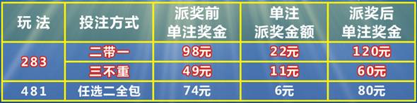 為回饋廣大彩民對(duì)中國(guó)體育彩票的支持與厚愛(ài),河南省體彩中心將于2017年11月9日(周四)起開(kāi)展“泳壇奪金”2000萬(wàn)元大派獎(jiǎng),“481”和“283”兩個(gè)玩法一起派獎(jiǎng),具體如下: