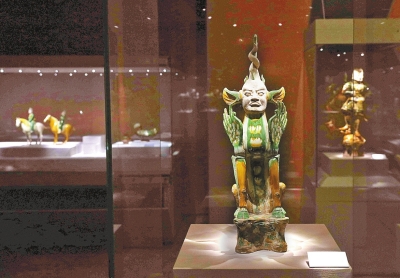 唐三彩因創(chuàng)燒于唐代,且釉色多以黃、綠、白三色為主色而得名。唐三彩以釉彩斑斕、色澤艷麗而著稱,體現(xiàn)了唐代盛世激揚(yáng)的時(shí)代精神,是我國(guó)陶瓷發(fā)展史上的重要一環(huán),也影響了中國(guó)后世低溫釉陶及鄰近諸國(guó)的陶瓷工藝發(fā)展。(記者游曉鵬文李康平偉攝影)