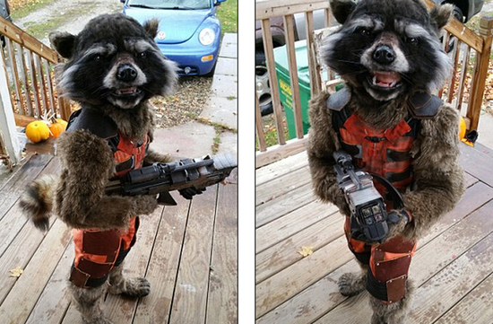 據(jù)悉,這件套裝仿照電影《銀河護(hù)衛(wèi)隊》里的漫畫角色“火箭浣熊”制作而成。該電影的導(dǎo)演詹姆斯·古恩(James Gunn)在網(wǎng)上看到后贊譽(yù)有加,稱“又一件超酷的萬圣節(jié)服飾,大家真的是棒極了!”