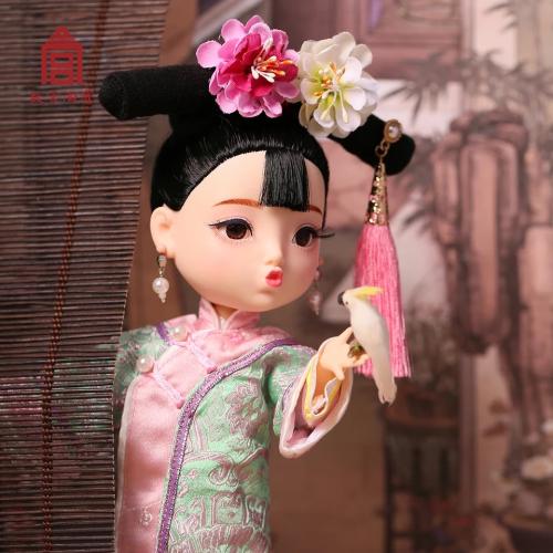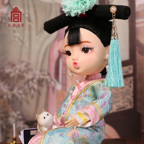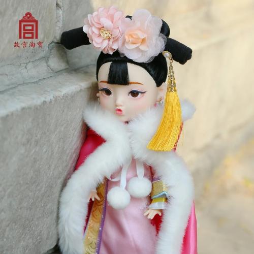 因此,故宮文創(chuàng)根據中國人的傳統(tǒng)五官印象,設計成此款烏發(fā)杏眼,寬額小嘴的中國娃娃。故宮文創(chuàng)方面表示,首次娃娃選擇了清代服飾,并在工藝允許的基礎上努力還原真實的清朝格格形象,之后還會陸續(xù)推出不同朝代的格格或公主服飾單品。