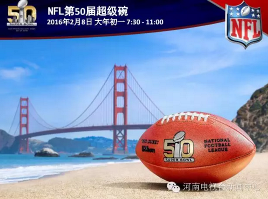 2月8日農(nóng)歷大年初一上午7:00到11:00,河南電視臺(tái)新聞?lì)l道全球同步直播第50屆美國(guó)職業(yè)橄欖球年度冠軍總決賽,敬請(qǐng)收看。