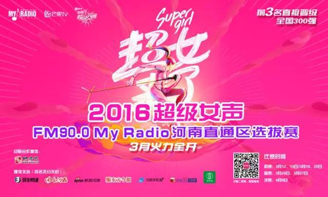 3月10日,由My Radio聯(lián)合芒果TV共同主辦的2016超級(jí)女聲河南直通區(qū)選拔賽校園海選正式拉開(kāi)帷幕。下午兩點(diǎn),首場(chǎng)海選在河南大學(xué)準(zhǔn)時(shí)舉行。