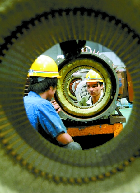 “轉(zhuǎn)方式、正風(fēng)氣、提效能”活動讓南陽的經(jīng)濟發(fā)展環(huán)境日益優(yōu)化,使許多大項目、大企業(yè)駛?cè)氚l(fā)展的快車道。圖為南陽防爆集團股份有限公司技術(shù)人員正在生產(chǎn)訂單出口防爆電機。