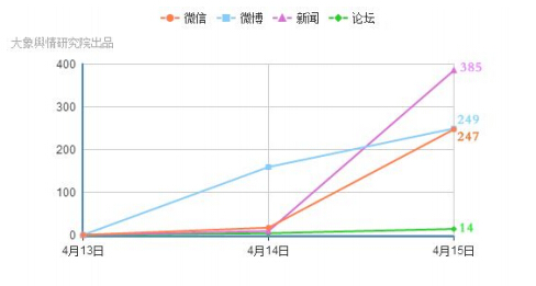 一、媒體傳播概況(截至4月15日14時)