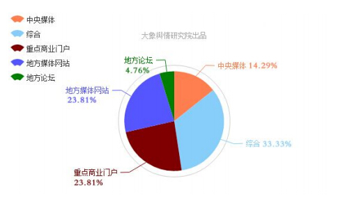 上圖可以看出,關注此事件的網絡媒體中,綜合類網站傳播活躍度最高,重點商業(yè)門戶網站和地方媒體網站旗鼓相當、緊隨其后。