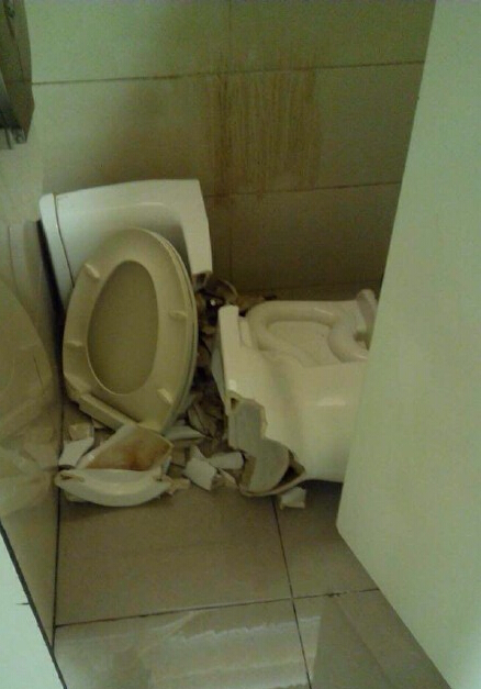據(jù)@新橋機(jī)場(chǎng)007 :今天上午新橋機(jī)場(chǎng)航站樓一名旅客站在馬桶上大便時(shí),馬桶發(fā)生碎裂,劃傷臀部,被緊急送往醫(yī)院救治。請(qǐng)大家遵守公共衛(wèi)生。圖為碎裂的馬桶。