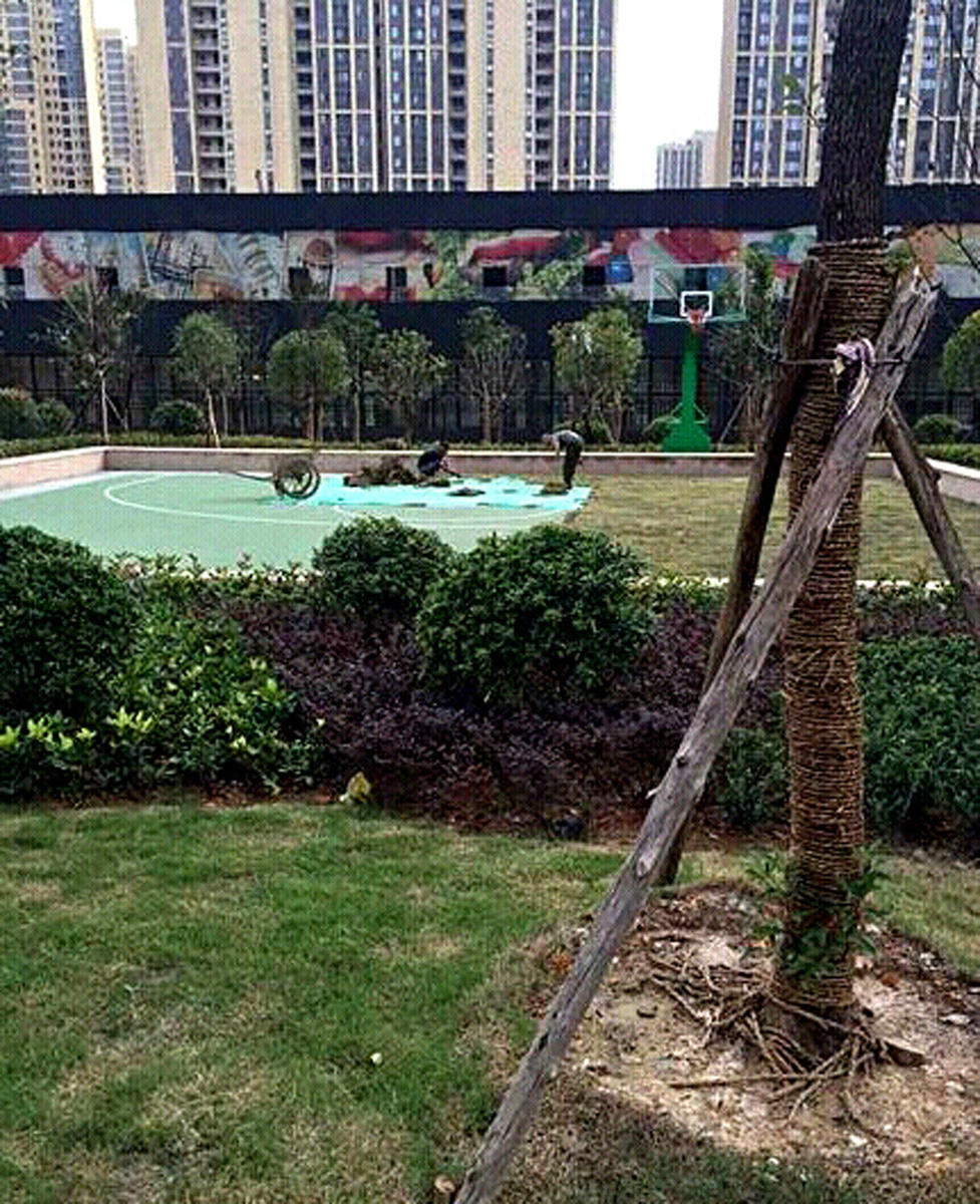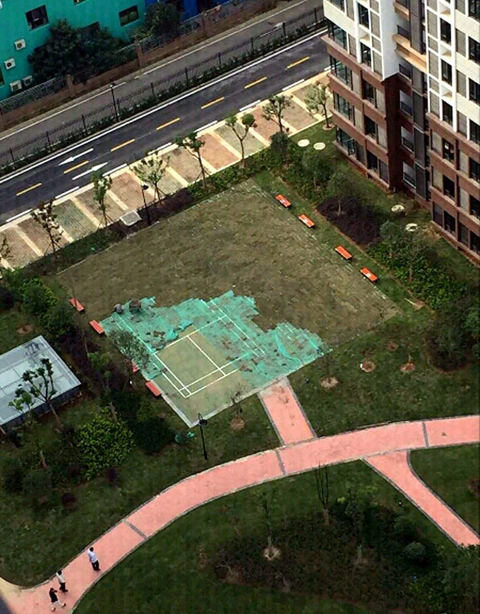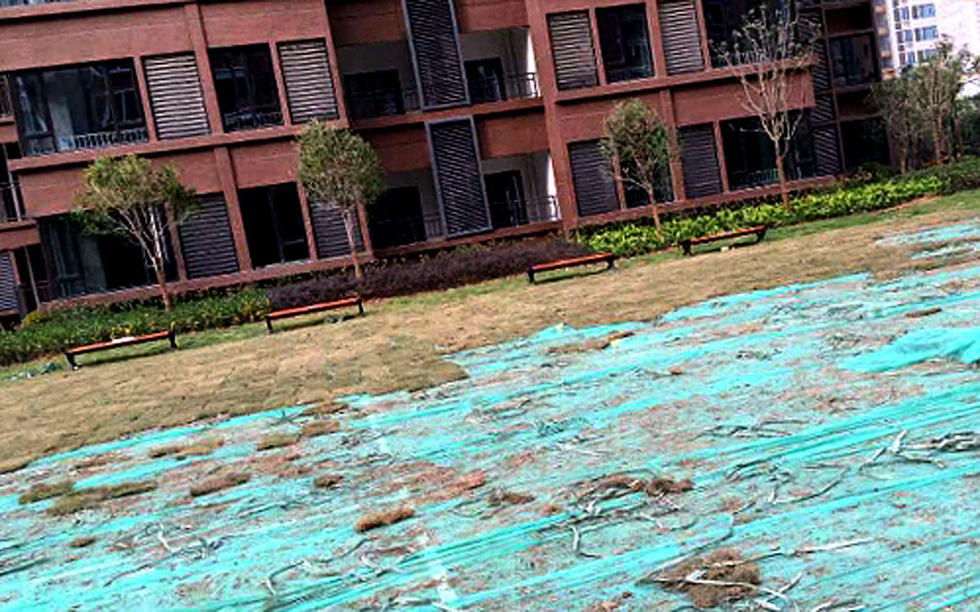 2015年10月12日,湖北武漢市一小區(qū)住宅項(xiàng)目為了通過綠化部門驗(yàn)收,開發(fā)商可謂煞費(fèi)苦心:在已建好的球場上鋪上草坪,增加綠化率。