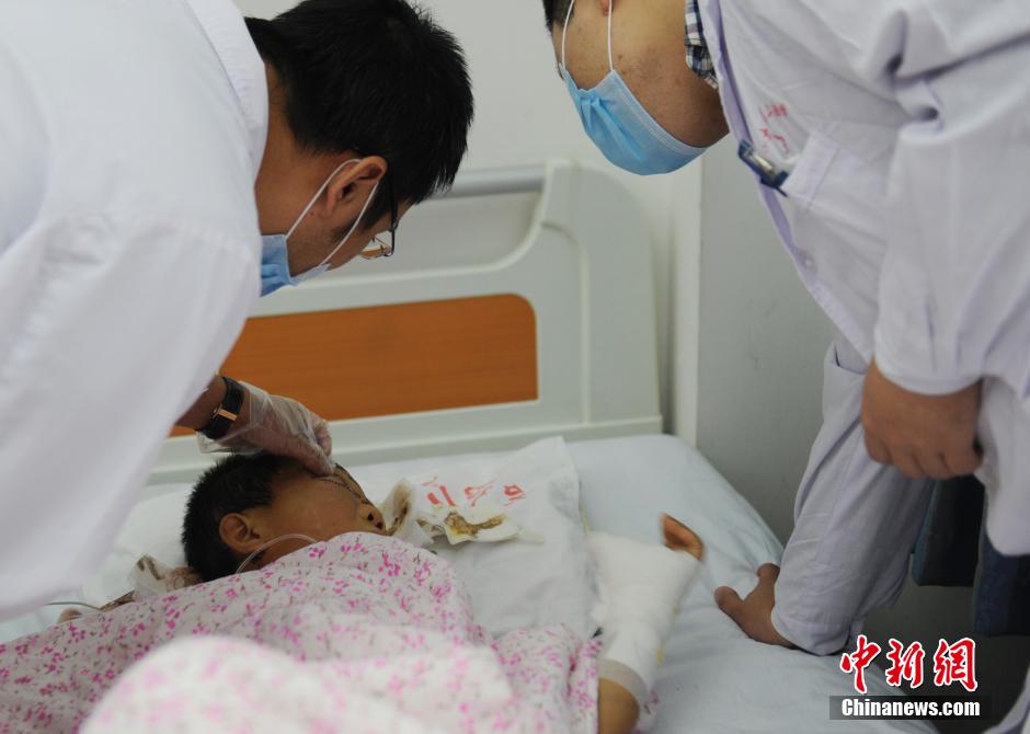10月13日,12歲的朱某正在吉林大學第二醫(yī)院接受治療。據(jù)其家人介紹,10月11日,朱某獨自在家,遭同村村民王某挖出雙眼,行兇者還點燃了他家的房子,朱某靠裝死逃過一劫。王某事后自殺。目前雖經(jīng)手術治療,但朱某右眼視力已無恢復的可能,左眼亦不樂觀。警方正對此案進行調查。中新社記者 張瑤 攝