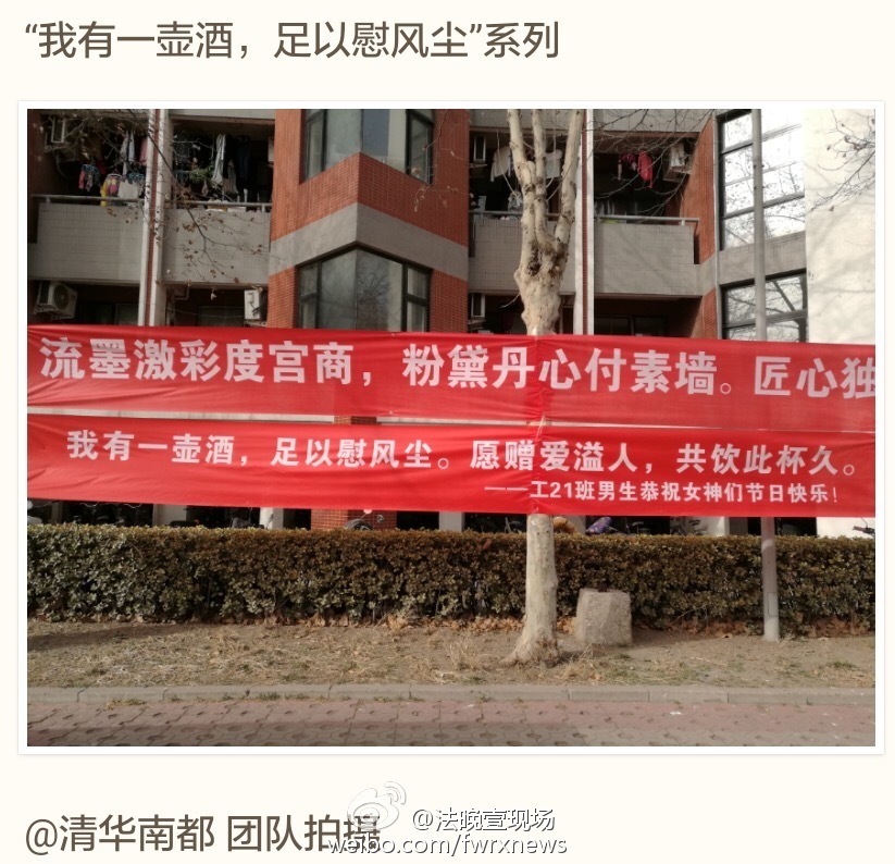 清華大學(xué)懸掛橫幅喜迎3.7女生節(jié)——文科生實在看不懂理工科的公式。