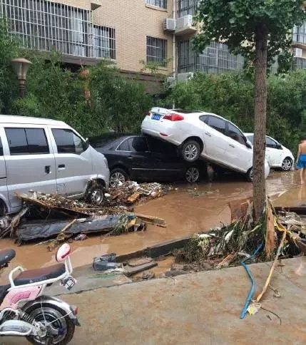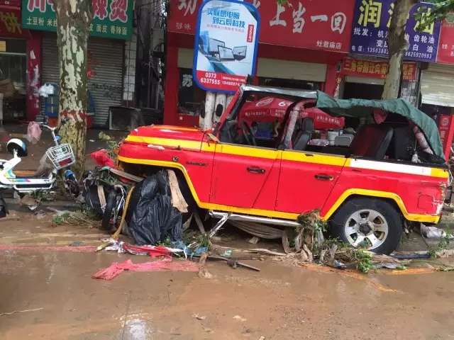 交通癱瘓,房屋坍塌,車輛受損,超市門面大量被淹,輝縣這場百年不遇的天災對輝縣造成巨大損失。