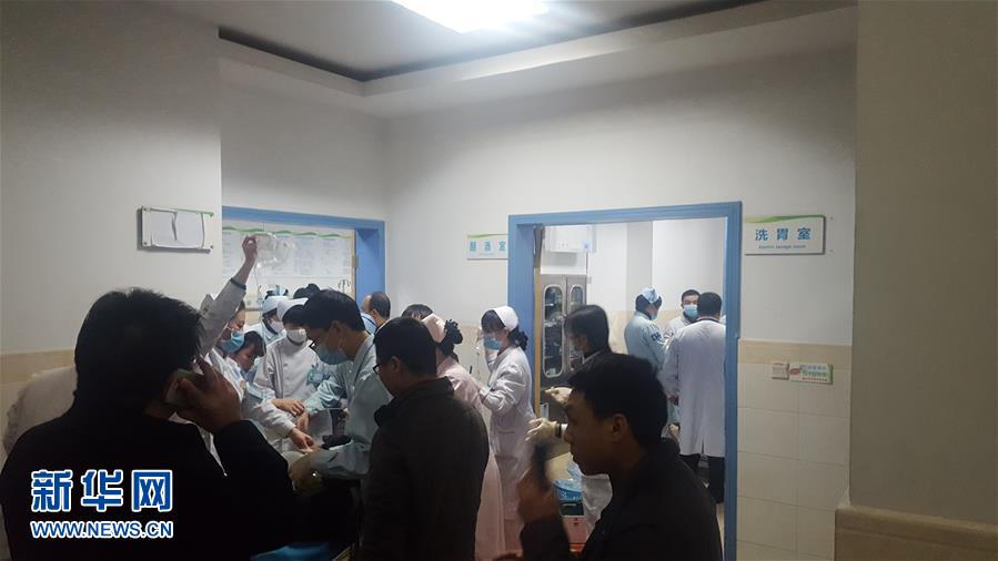 12月18日,在四川省巴中市中心醫(yī)院,醫(yī)護人員對疑似食物中毒人員進行救治(手機拍攝)。記者18日從四川省巴中市委宣傳部獲悉,當(dāng)日巴州區(qū)金碑鄉(xiāng)發(fā)生一起涉及30名群眾的疑似食物中毒事件。目前,已造成2人死亡,3人病情較重。新華社發(fā)(新浪微博網(wǎng)友@巴中那些事 提供)