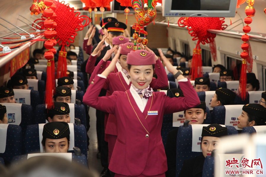 映象網(wǎng)快訊(記者 阮海峰 文/圖)1月9日,鄭州客運(yùn)段高鐵一隊(duì)組織在家休班的干部職工60余人在熱備車上,召開“平安春運(yùn),有序春運(yùn),溫馨春運(yùn)”動(dòng)員大會。