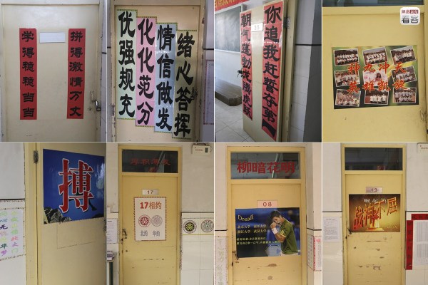 在校方的壓力之下,學(xué)生們自己也開(kāi)始以不同方式給自己、給同學(xué)打雞血、互相勵(lì)志。圖為學(xué)校的“門(mén)文化”。