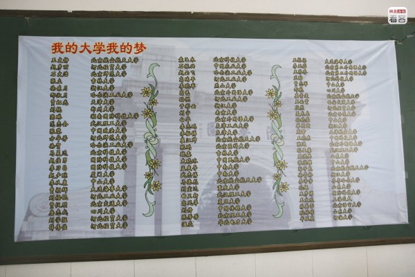 學(xué)生們也會(huì)立下不同的目標(biāo)和誓言,并以文本方式展現(xiàn),督促自己完成目標(biāo)。圖為2009年6月2日,黑板上貼著學(xué)生們夢(mèng)想的學(xué)校。