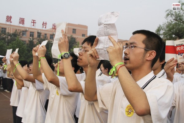在外人看來(lái),這場(chǎng)百日誓師更像是一場(chǎng)成功學(xué)的講座。有教育界人士表示,很多學(xué)校用近似傳銷(xiāo)式的心理暗示,以呼喊口號(hào)等方式不斷給學(xué)生強(qiáng)化、灌輸“高分”意志。學(xué)校成為“高考?jí)艄S”,學(xué)生則成為這個(gè)工廠里的“考試機(jī)器”。