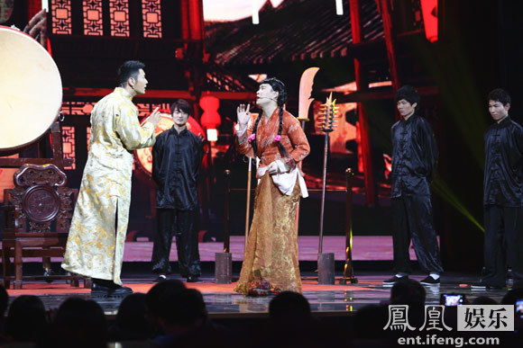 日前,《歡樂(lè)喜劇人》第二季發(fā)布預(yù)告片,網(wǎng)友驚喜發(fā)現(xiàn)其中居然有“教主”黃曉明的身影。據(jù)悉,黃曉明將作為助演嘉賓與遼寧民間藝術(shù)團(tuán)上演古裝喜劇《喜從天降》。其中,小沈陽(yáng)梳著兩個(gè)大麻花辮,紅唇艷抹,“笑”果十足。而黃曉明則是一身金黃色長(zhǎng)袍,帥氣有型。兩人在舞臺(tái)上配合默契,尤其是黃曉明卸下“偶像包袱”搞笑揮手,積極與觀眾互動(dòng),甚至還和小沈陽(yáng)深情對(duì)視,將現(xiàn)場(chǎng)推向高潮。小沈陽(yáng)則十分入戲,對(duì)著黃曉明嬌聲嬌氣說(shuō)道“我就是你的Baby”,惹得臺(tái)下尖叫連連。這也讓不少網(wǎng)友十分好奇,紛紛評(píng)論道“到底發(fā)生了什么,黃曉明居然也來(lái)演喜劇了”、“黃曉明都來(lái)了,這是要逆天的節(jié)奏??!”、“曉明哥我就不說(shuō)你了,求angelababy的心里陰影面積”、“陽(yáng)仔,我們可就等著周末看你怎么撲倒黃曉明”。