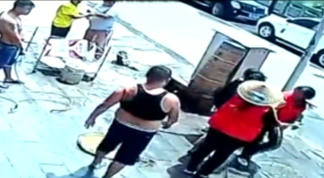 全家出動(dòng) 環(huán)衛(wèi)工被高跟鞋敲頭