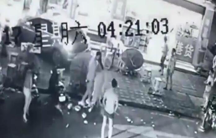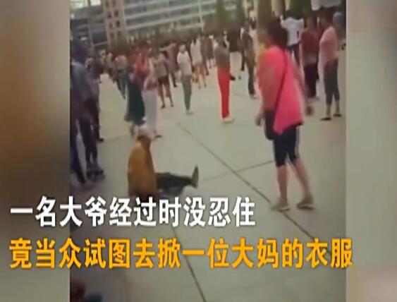 大爺當(dāng)眾撩裙 大媽飛腳踹倒地