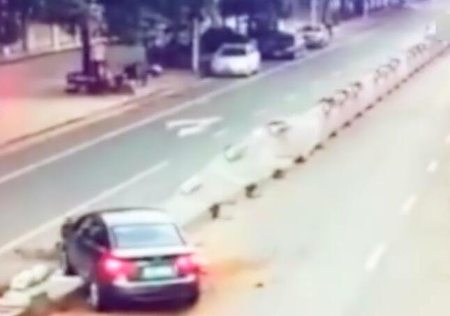 車撞護(hù)欄如多米諾骨牌般翻倒