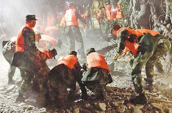 四川7級地震 官兵救出一男子