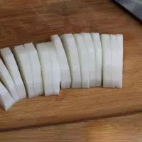 2. 切成1CM左右的厚片,再切開(kāi)成2片或4片。