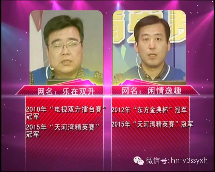 “樂在雙升”和“閑情逸趣”是一對老搭檔,城市對抗賽冠軍開封隊(duì)主力隊(duì)員,兩人搭檔曾獲得2015年天河灣精英賽冠軍?!伴e情逸趣”曾獲得2012年東方金典杯冠軍,“樂在雙升”曾獲得2010年電視雙升擂臺(tái)賽冠軍。
